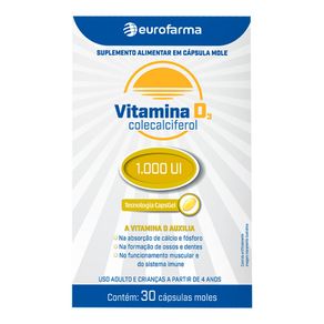 Vitamina D 1.000 Ui Eurofarma 30 Cápsulas – Imunidade E Ossos