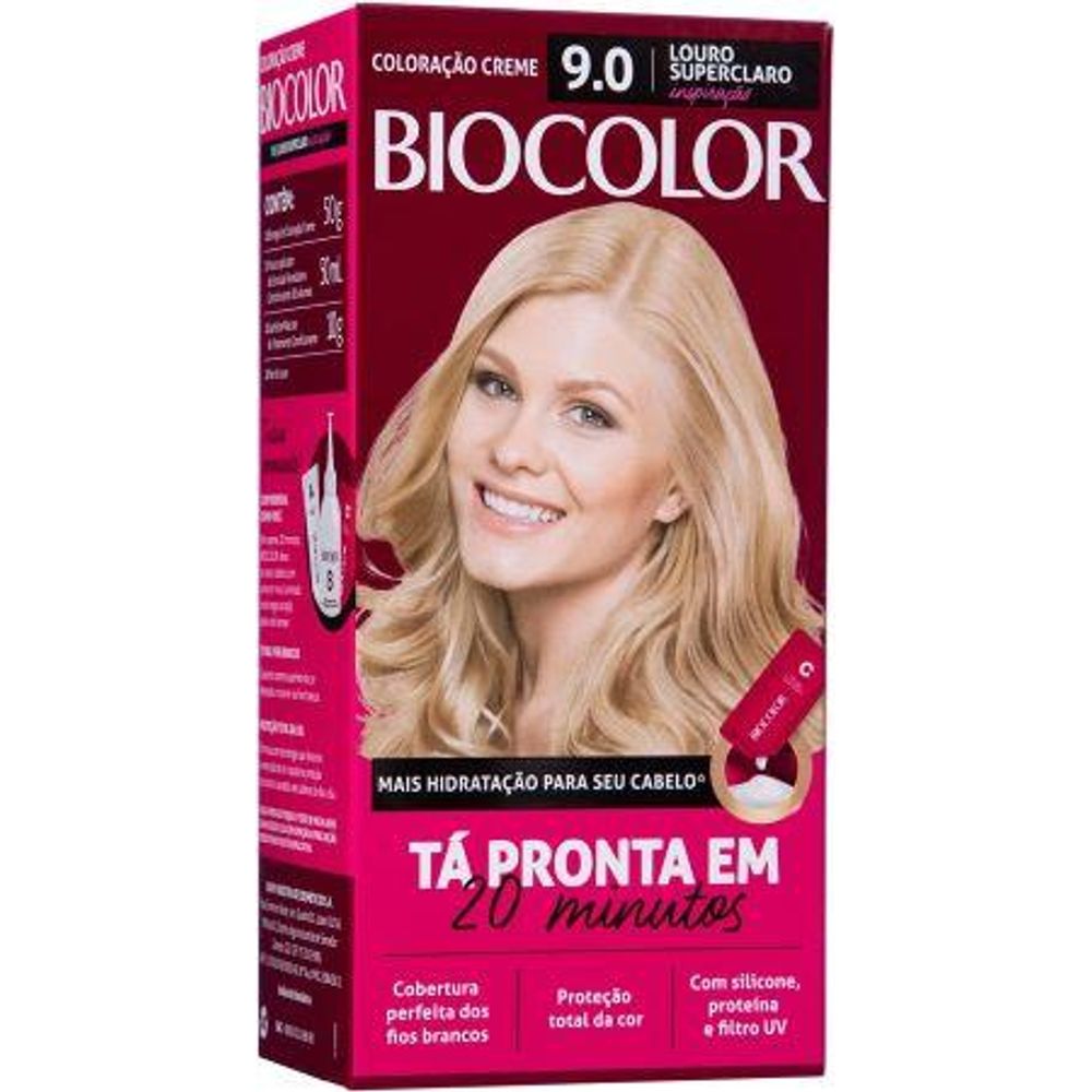 A Tinta de Cabelo Biocolor Mini Kit Super Louro Absoluto 9.0 garante uma cobertura perfeita da cor desejada e proporciona uma cor intensa e duradoura, trazendo a proteção que o cabelo precisa. A versão Mini do produto age em apenas 20 minutos e possui bisnaga de tratamento para os fios que proporciona hidratação e brilho até a próxima aplicação. Sua fórmula, com fragrância suave, tem silicone, proteína e filtro UV. Mude seu visual com Biocolor!